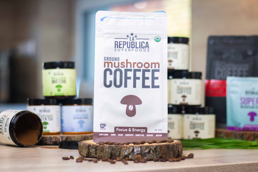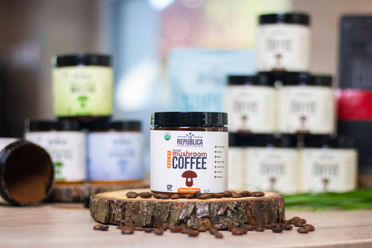 A La Republica az egyetlen gombakávé a piacon, amelyről tudjuk, hogy nagy kivonaterőt használ... akár 10:1 erősségű! Ez azt jelenti, hogy 10-szer erősebb, mint az 1:1 tömegarány, micélium és töltőanyag nélkül, csak egész gombák, amelyeket tényleges fákon termesztenek. Sok más előnye is van a magasabb potenciának.